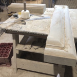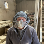 Lewis busy carving a solid English Bath stone surround made to customers own requirements getting ready for delivery next week