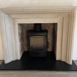 Installation of a made to measure Bath stone Sunstone carried out last week with Tim Davy who installed the stove