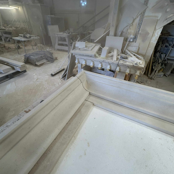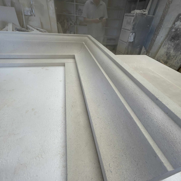 Lewis busy carving a solid English Bath stone surround made to customers own requirements getting ready for delivery next week