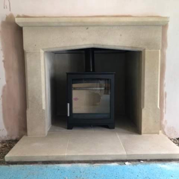 Beautiful hand carved solid Bath stone fireplace The Moonstone carved by Lewis The hearths were fitted by Chris last week and the surround fitted today after stove installation in Wiltshire