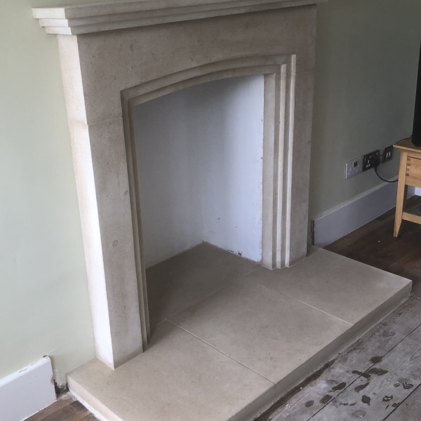 Hand carved solid bath stone fireplace carved and fitted The Jasper with curved lintel