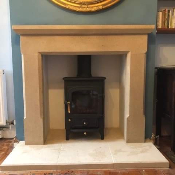 Beautiful hand carved The sapphire Bath stone fireplace and hearths fitted locally in Stroud Gloucestershire today.