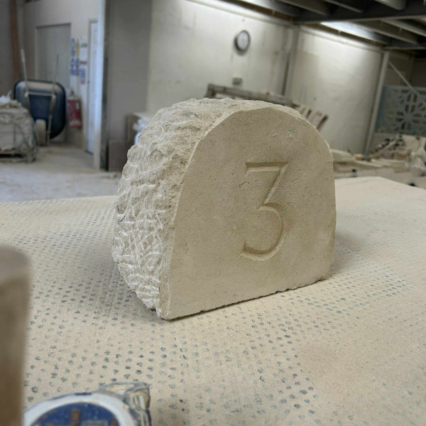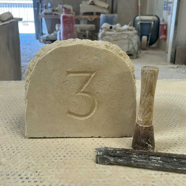 Hand carved solid Bath stone house number carved today by Lewis
