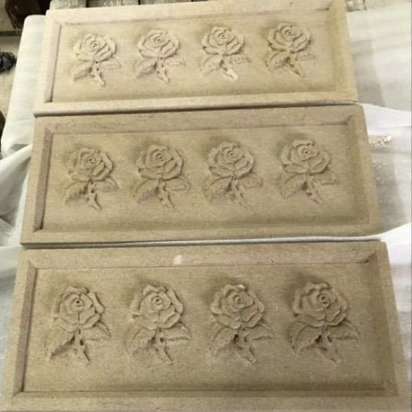 Beautiful hand carved stone rose plaques carved by Mike for our client