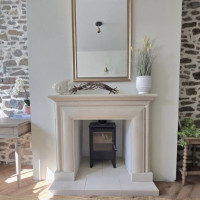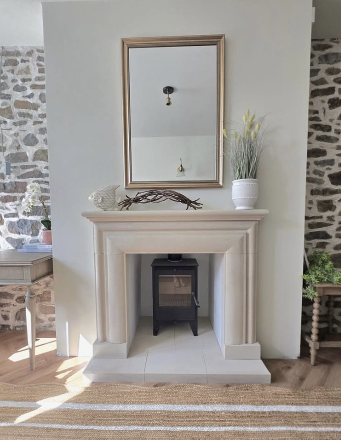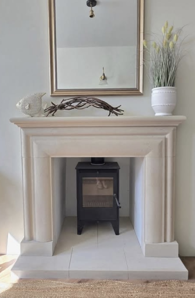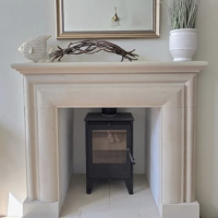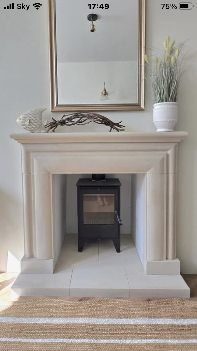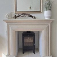 As you can see from the photograph, its perfect for a multi fuel stoves or woodburners to sit nicely within its opening or perhaps a fire basket with a roaring open fire. It is carved from solid blocks of English Bath quarried stone and carved to the design you see in the photograpghs, a stone lined chamber is NOT included.
